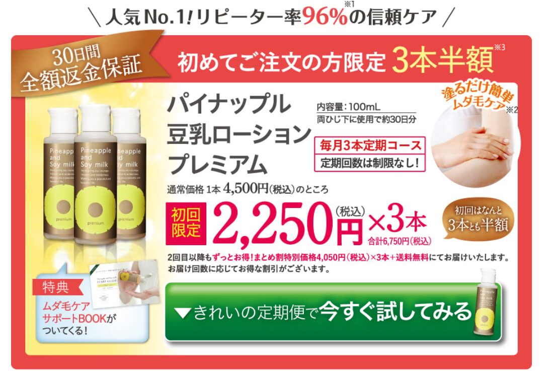 いずれにしてもパイナップル豆乳ローションプレミアムが気になる方は回数制限無しの定期便がおすすめです。