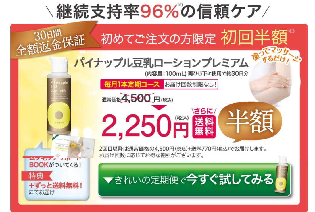 パイナップル豆乳ローションプレミアムは単品購入だと「4,500円(税込)+送料770円」となります。
